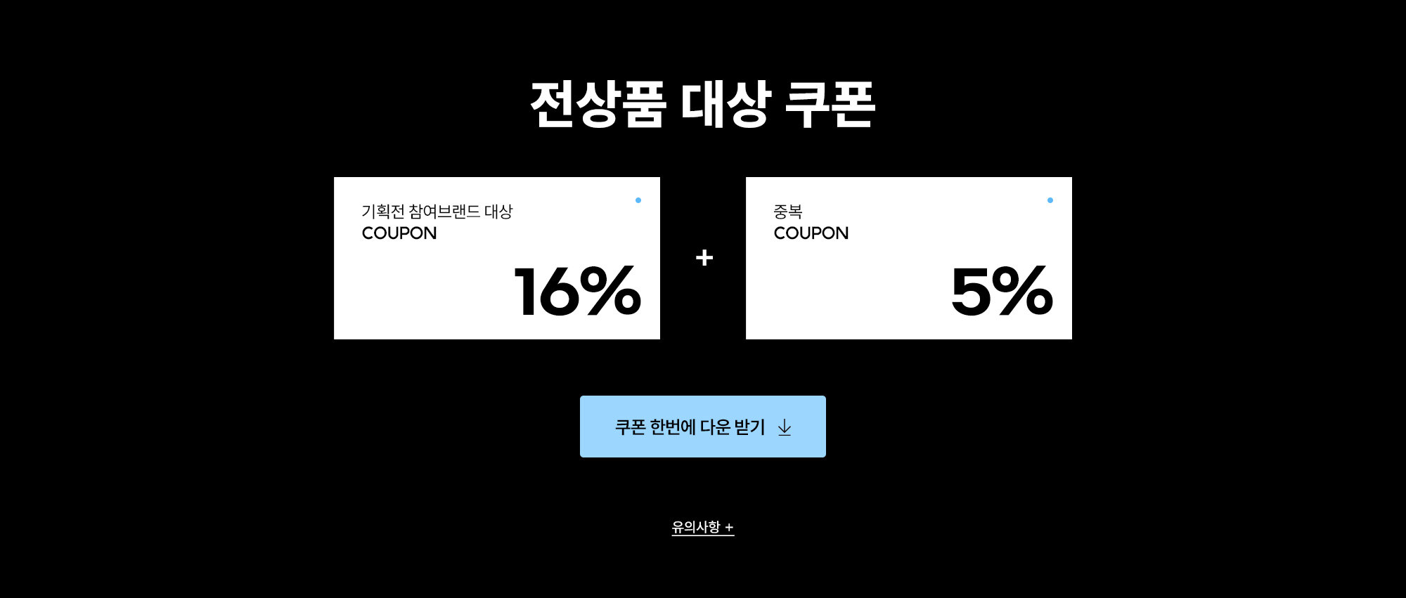 - 쿠폰 발급 및 사용 기간 : 2024. 07. 08 오전 10시 - 07. 29 오전 10시까지 - 쿠폰 안내 : 무제한 다운로드 및 사용 가능합니다. - 사용 조건 : 1만원 이상 상품 구매 시 사용 가능하며, 최대 할인 조건은 10만원입니다. - 사용 제한 : 일부 브랜드 및 상품은 사용 불가합니다. - 진행 상황에 따라 사전 고지 없이 내용 변경 및 조기 종료될 수 있습니다.