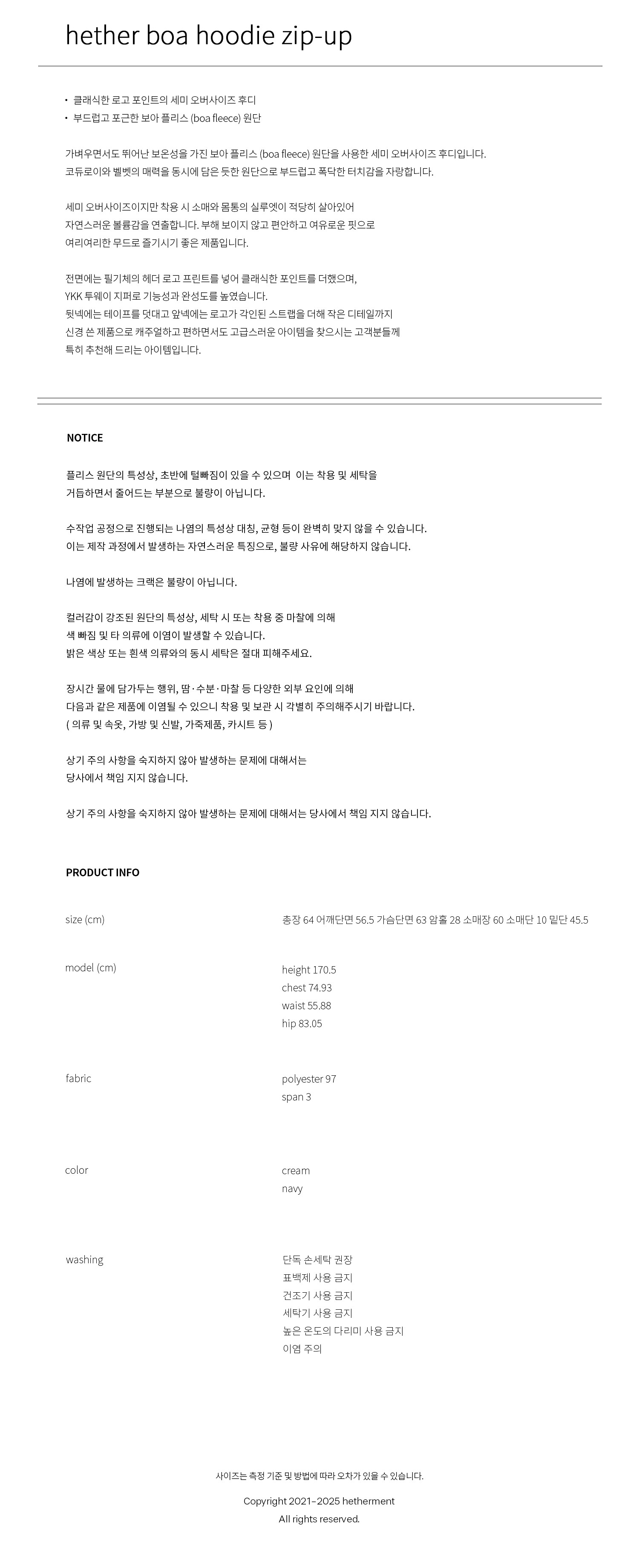 | 세탁방법 및 취급시 주의사항 | 상세페이지 참조 |