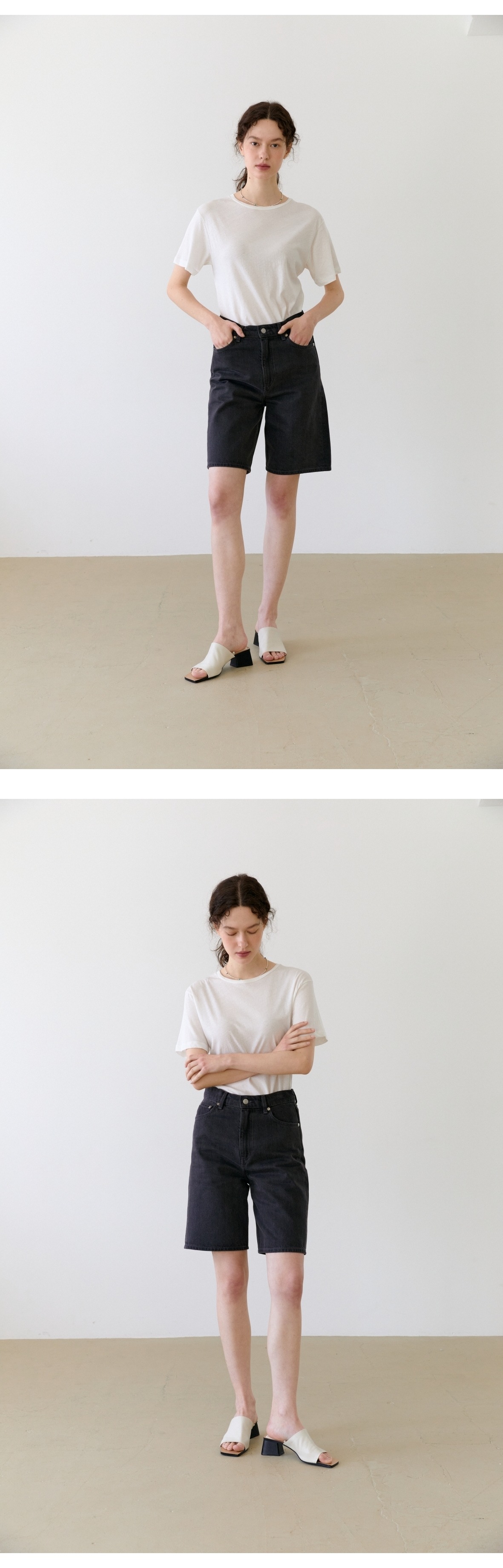 데일리로 착용하기 좋은 베이직한 오프 화이트 컬러로 다양한 하의류와 아우터의 스타일링이 자유로운 아이템입니다