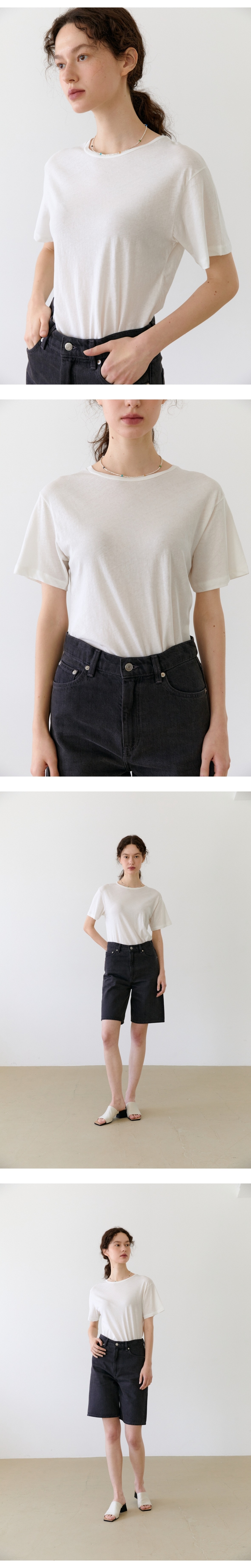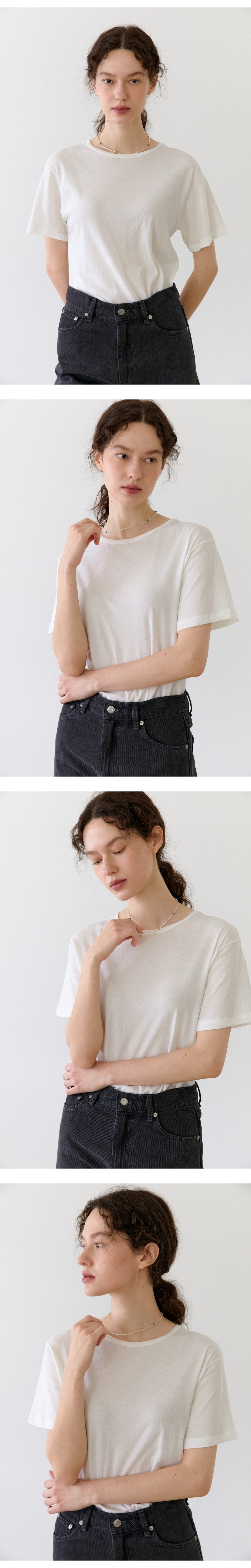 적당한 레귤러 핏과 길이감으로 단품이나 레이어드로 착용하기 좋은 사이즈이며, 가벼운 중량감과 매트한 표면감은 청량한 착용감이 느껴집니다