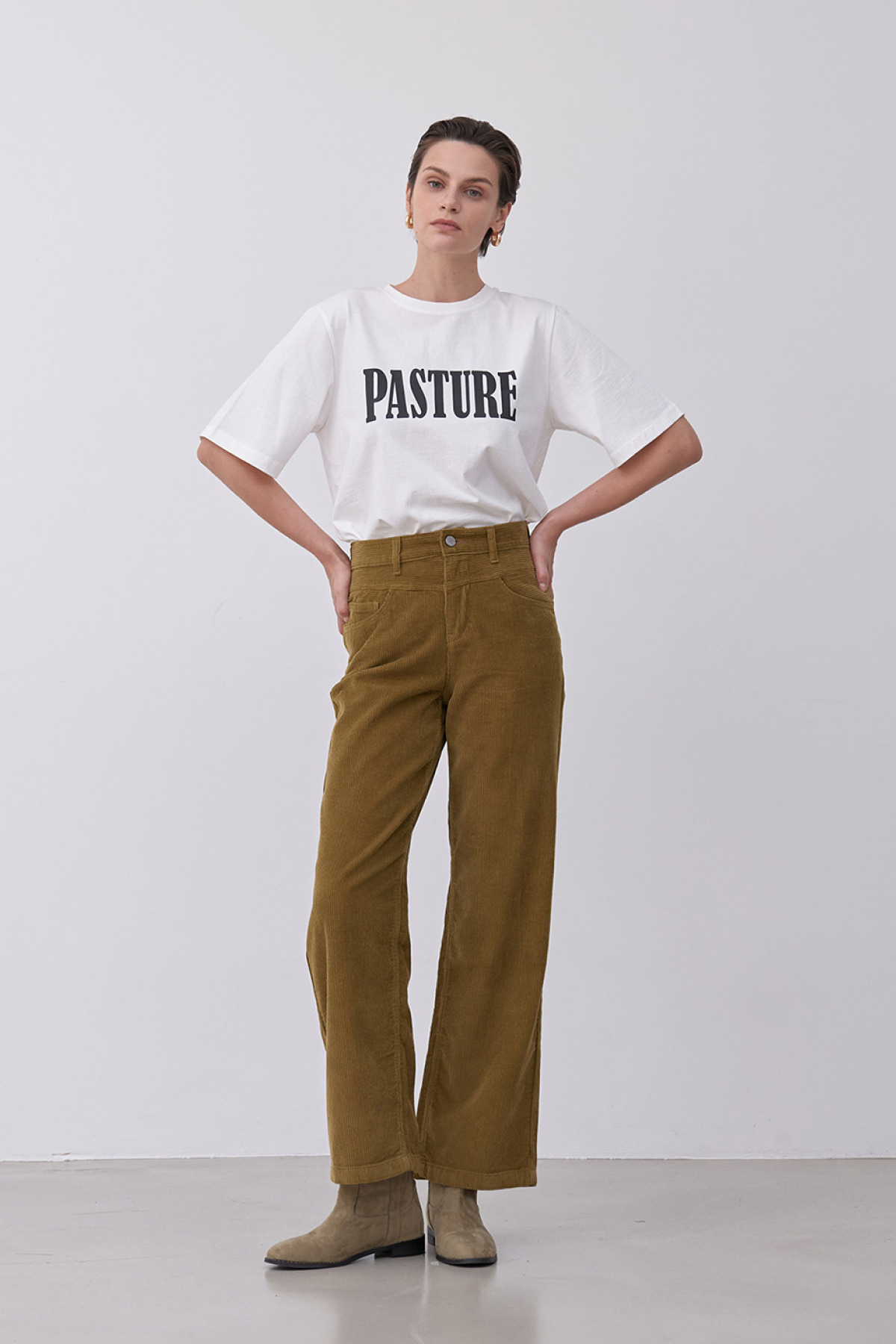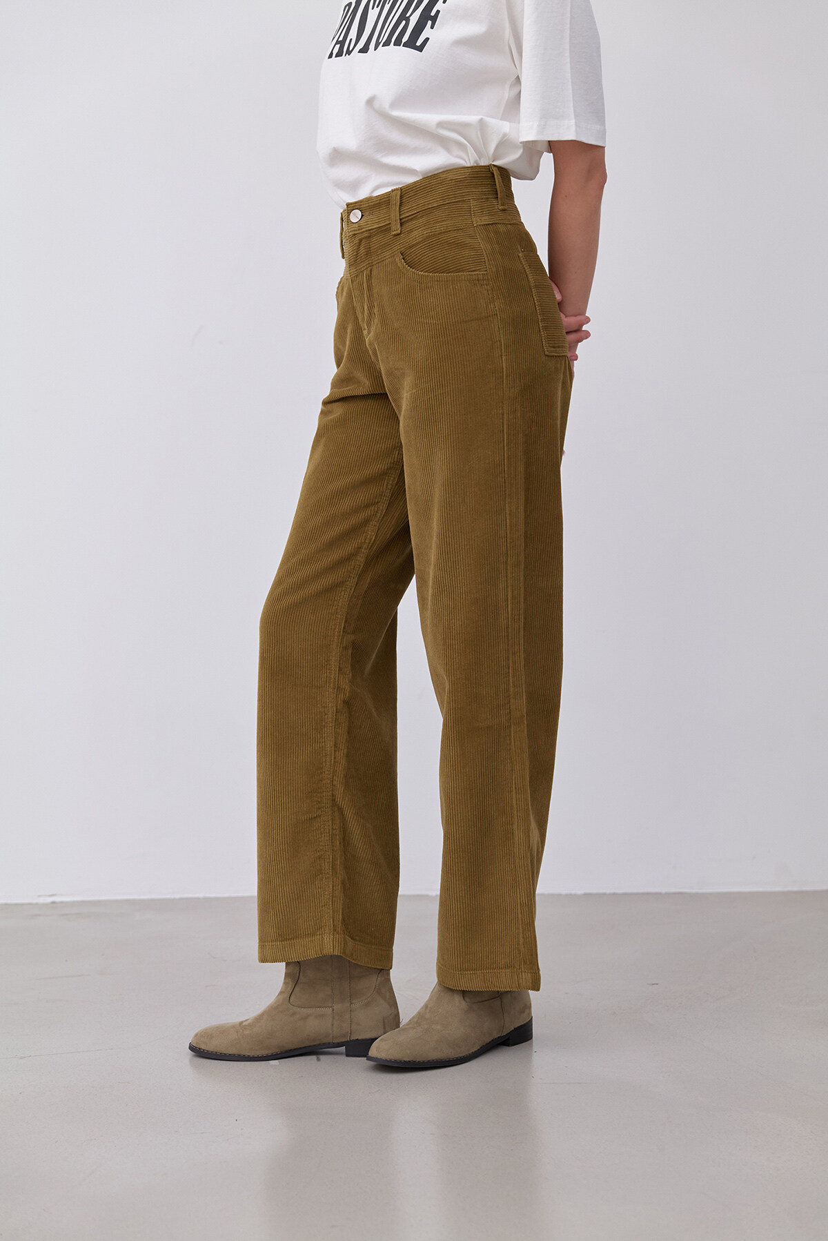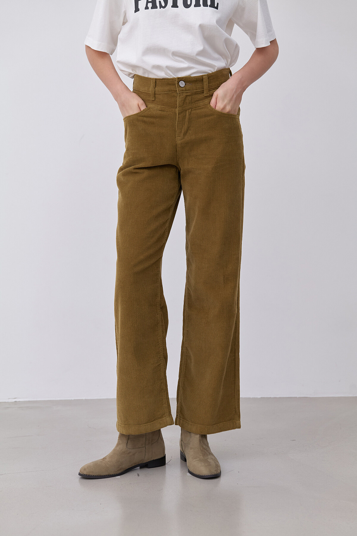 앞 요크절개가 포인트인 와이드핏 코듀로이 팬츠