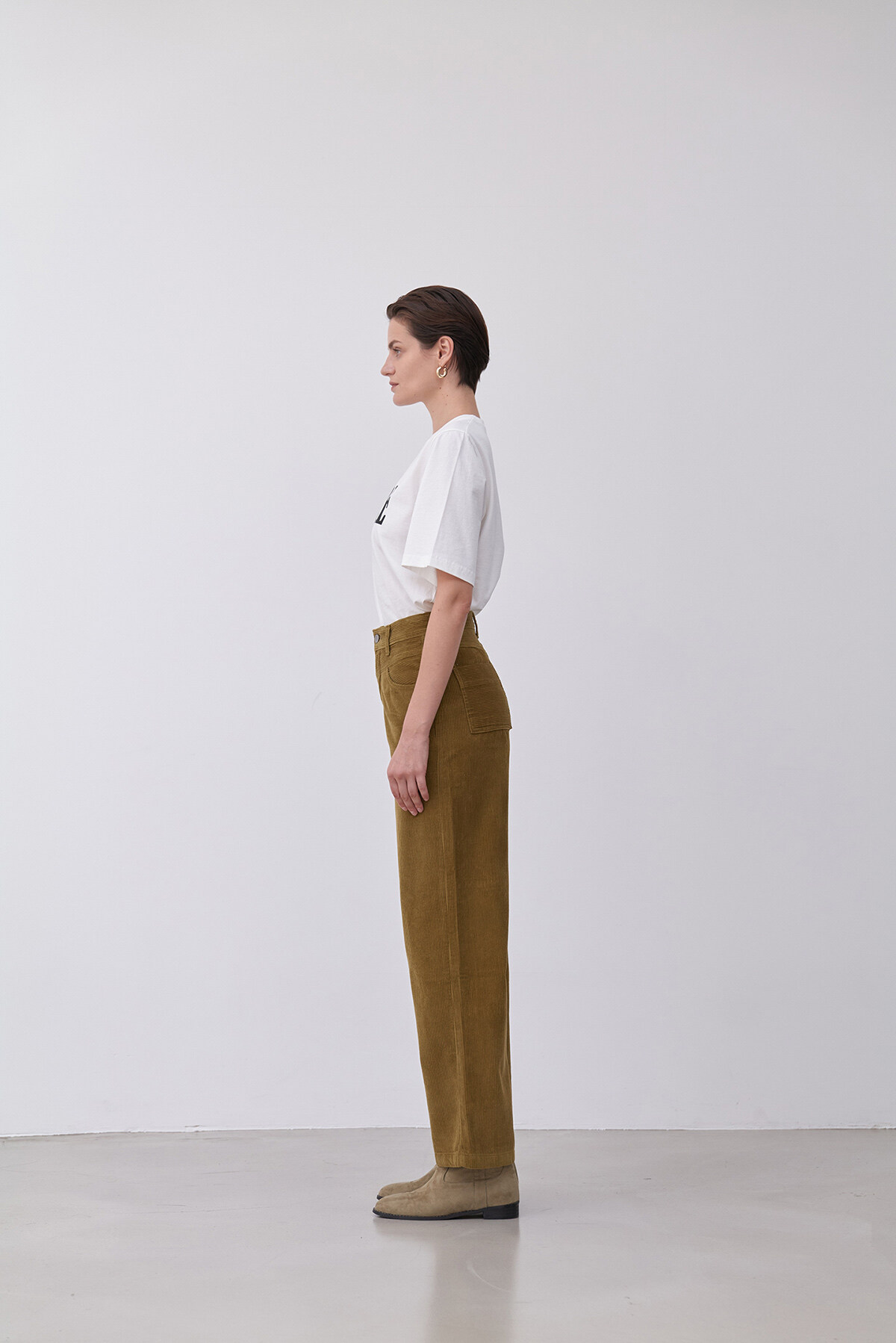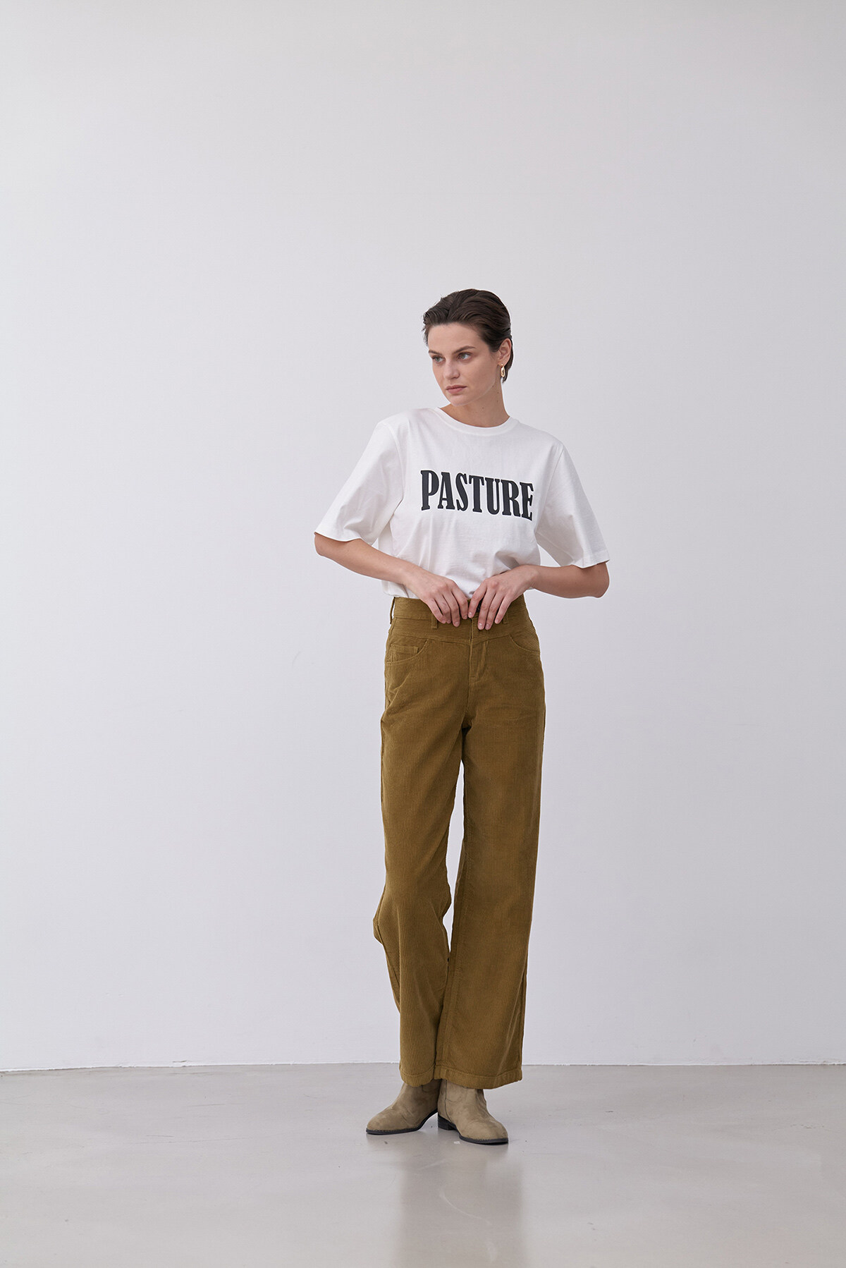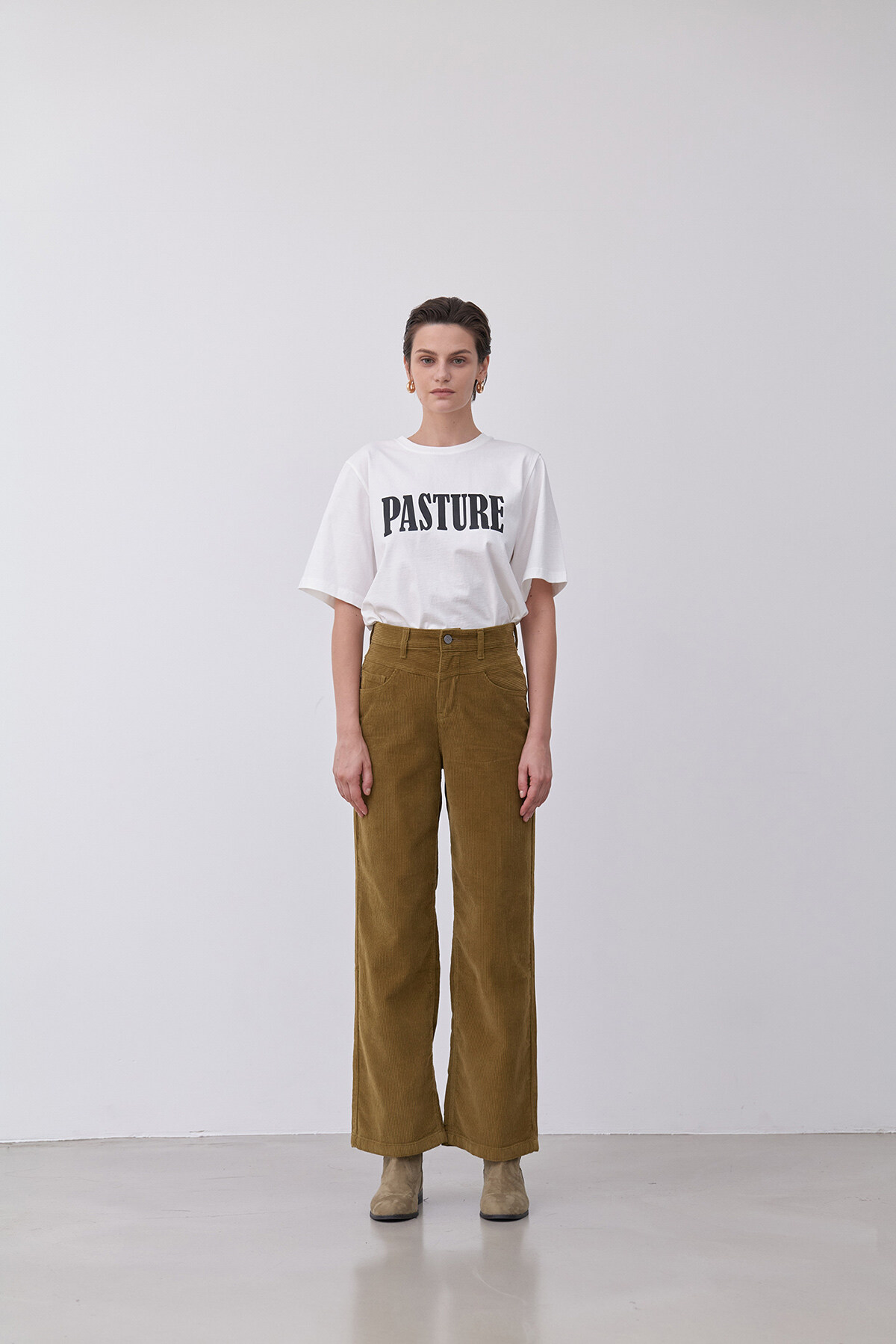 앞 요크절개가 포인트인 와이드핏 코듀로이 팬츠