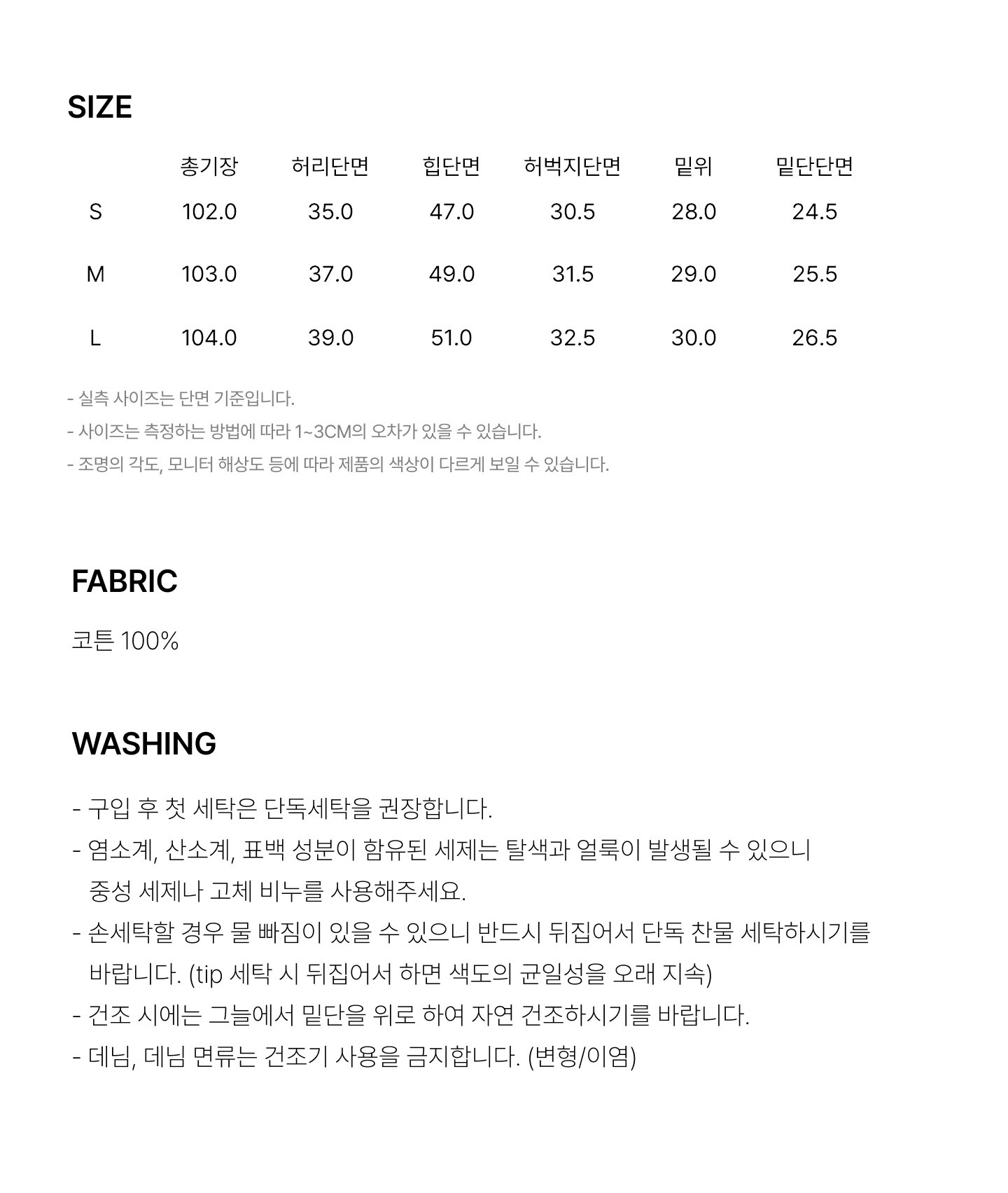 | 세탁방법 및 취급시 주의사항 | 상세페이지 참조 |